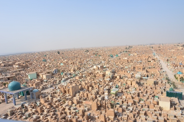 Wadi-us-Salaam en español significa Valle de la Paz. Es considerado uno de los panteones más grandes del mundo, con una superficie de 1485 acres (algo así como 6 km²), donde han sido enterradas millones de persones a lo largo de 1,400 años (se estima que entierran ahí a 500 mil personas anualmente) superando así la población de muchas ciudades del mundo.